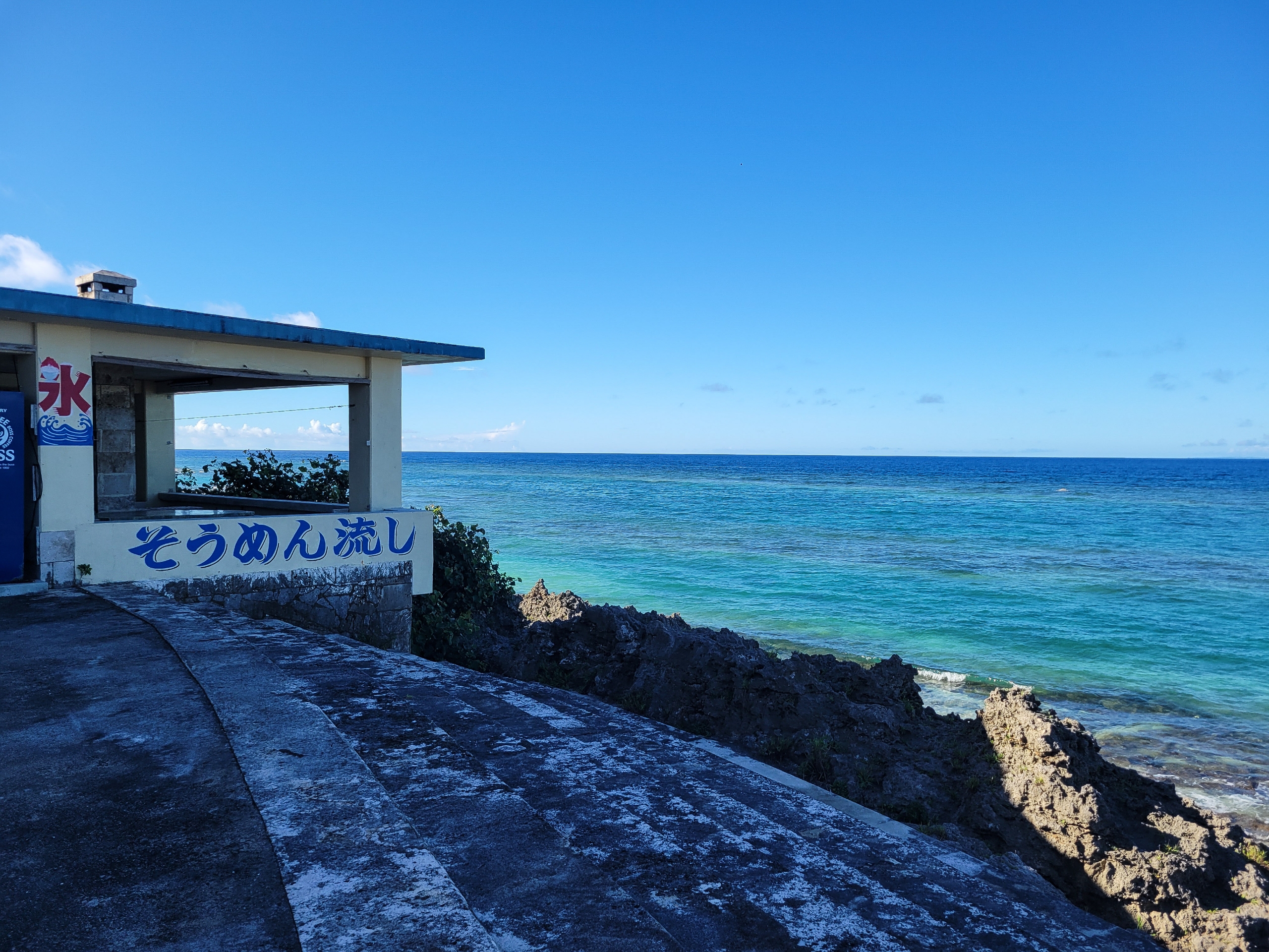 屋子母海岸には旅館と海の家的な施設が一軒だけあります。そうめん流しいいですね。