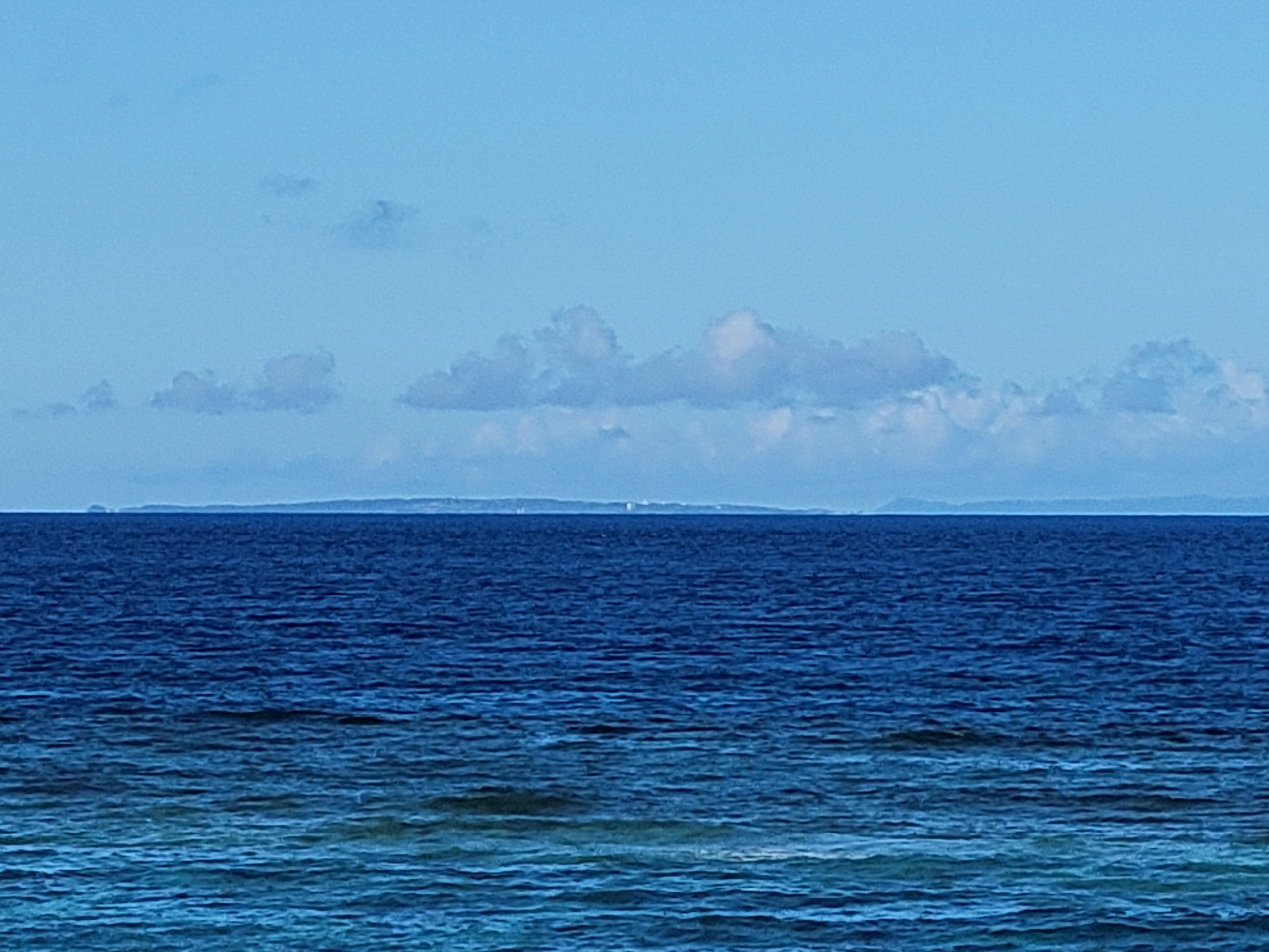 与論島とさらに右奥に沖縄本島の島陰がみえています。地理的に与論島から一番近い場所が屋子母海岸になります。