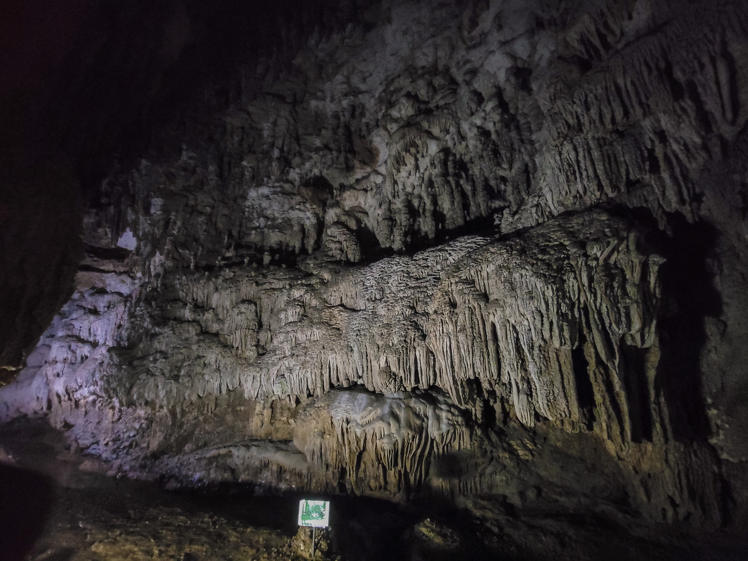 入口にあった看板によると、鍾乳石は1mm生長するのに3年かかるそうです。1cm30年、1m3000年、とてつもない長い年月を要するのですね。
