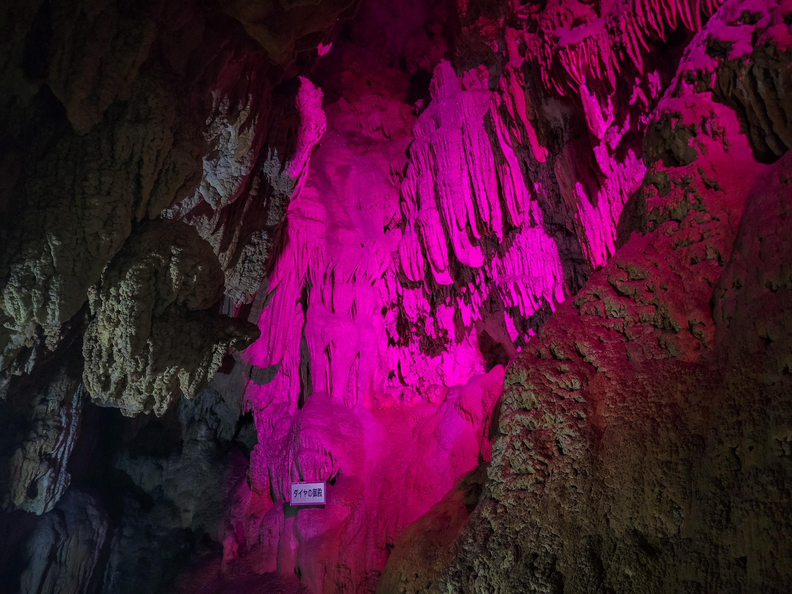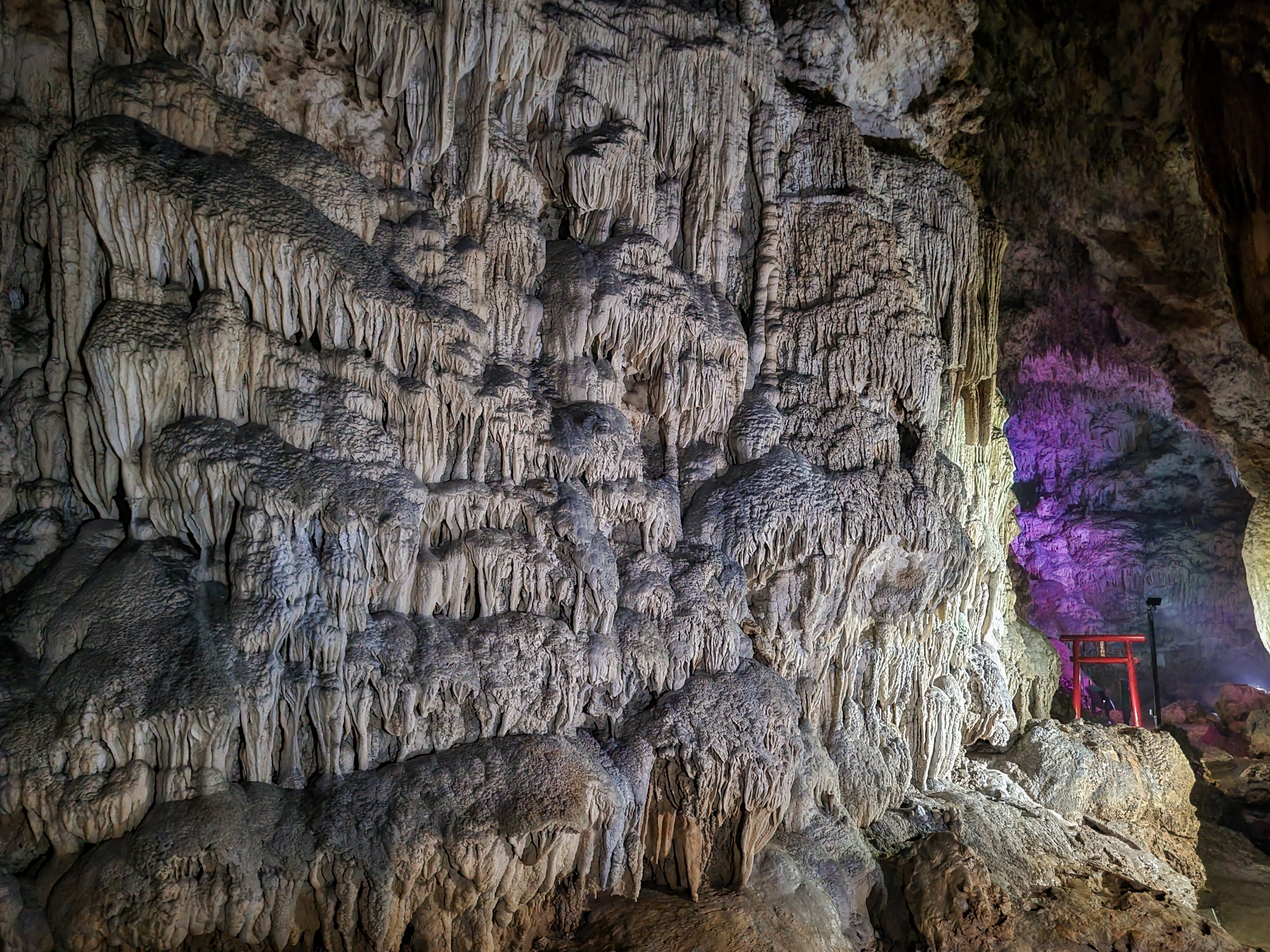 こういう色のついたライトアップはやすっぽくて辞めて欲しいですね。自然そのままの色で表現して欲しい。ここは一部だけだったので良いですが、20年以上前にいったベトナムのハロン湾クルーズ中で立ちよった鍾乳洞は、全体がカラフルにライトアップしていてゲンナリとし記憶があります。