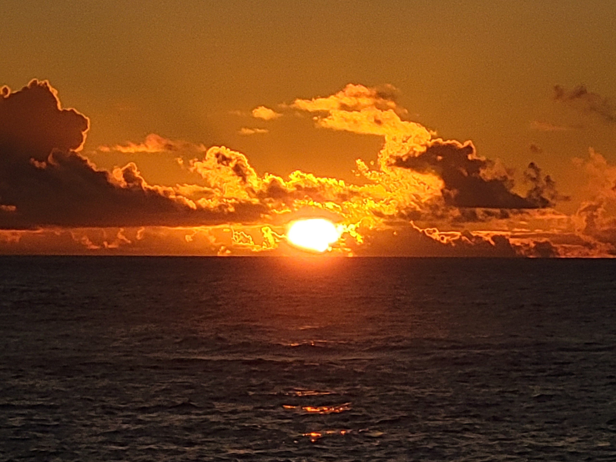 05時38分。暖かい海は雲が湧いてて、水平線から太陽が昇ることは意外と少ない気がします。