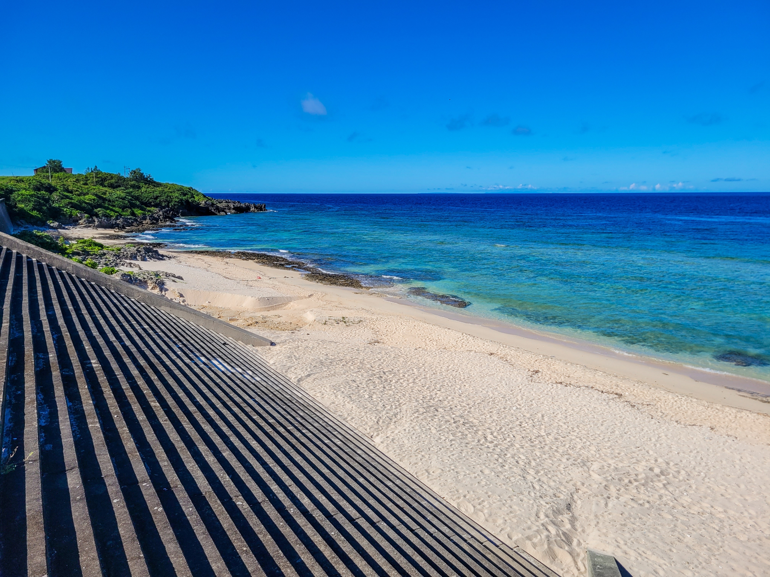 与論島含めて、今までみたなかで一番の美しさではないかと思うほど。海の透明度がかなり高いと思われます。梅雨明けして一週間以上まとまった雨が降っていないことも好影響なのでしょう。