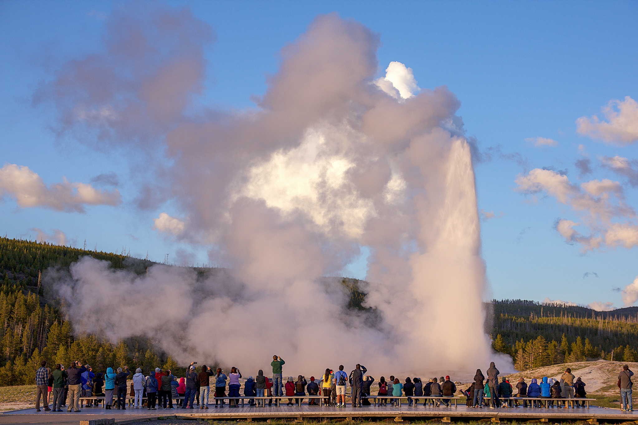 間欠泉には西日が当たり始めていますが、まだだいぶ明るいですね。