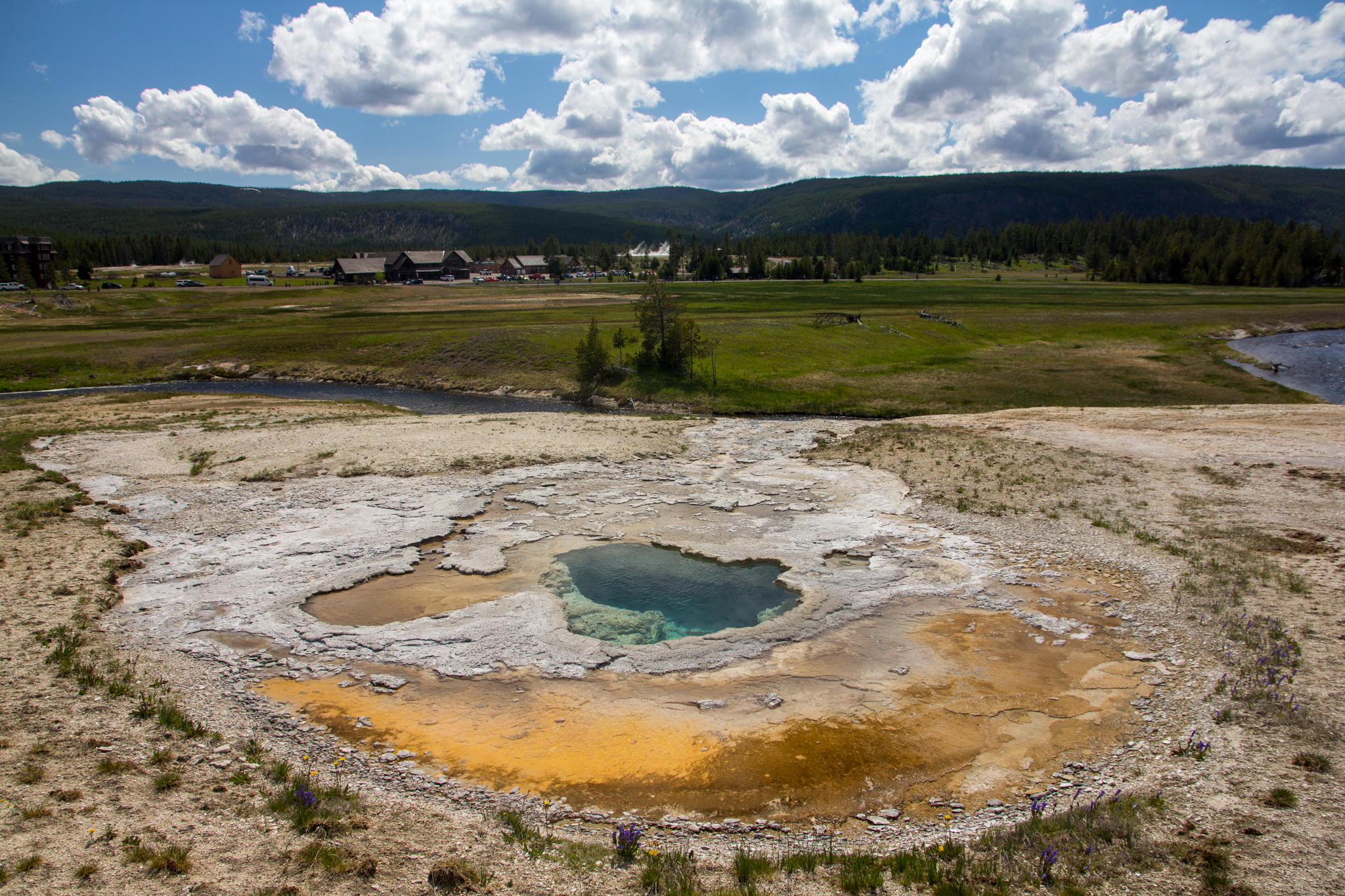 オールドフェイスフルを東西に分断するように流れるファイヤーホールリバー。