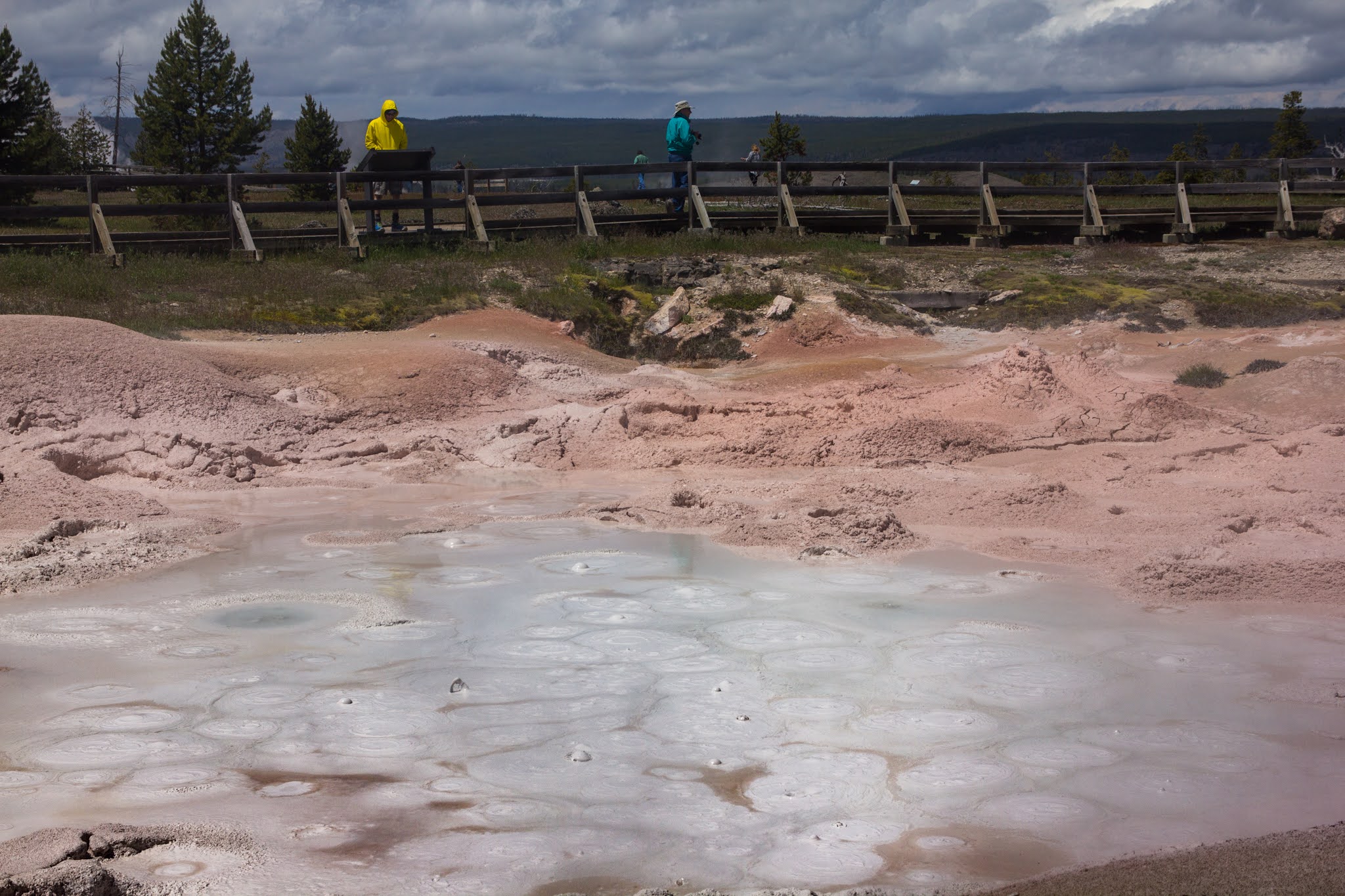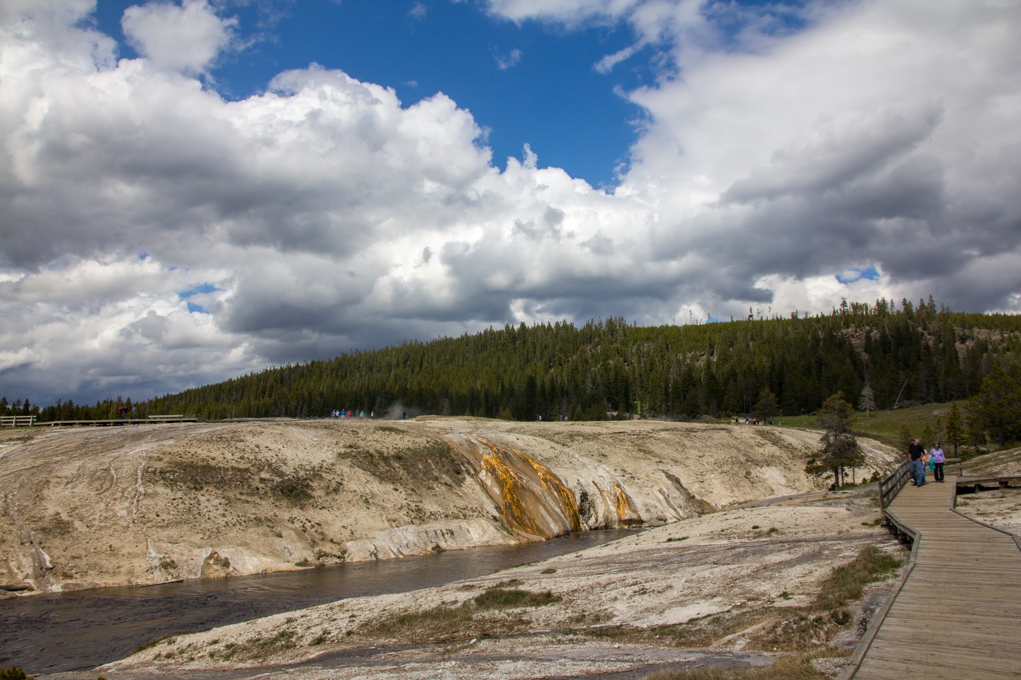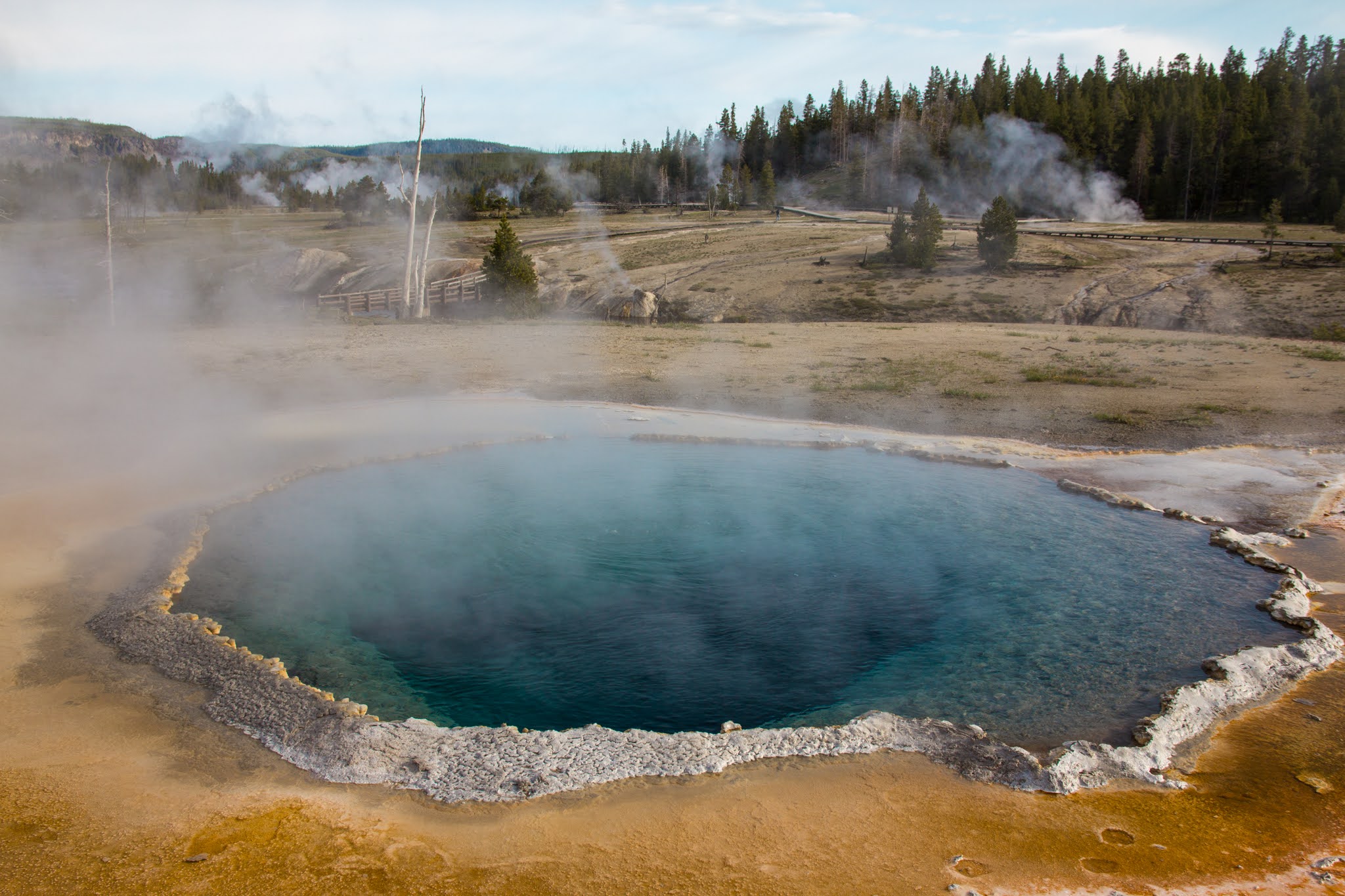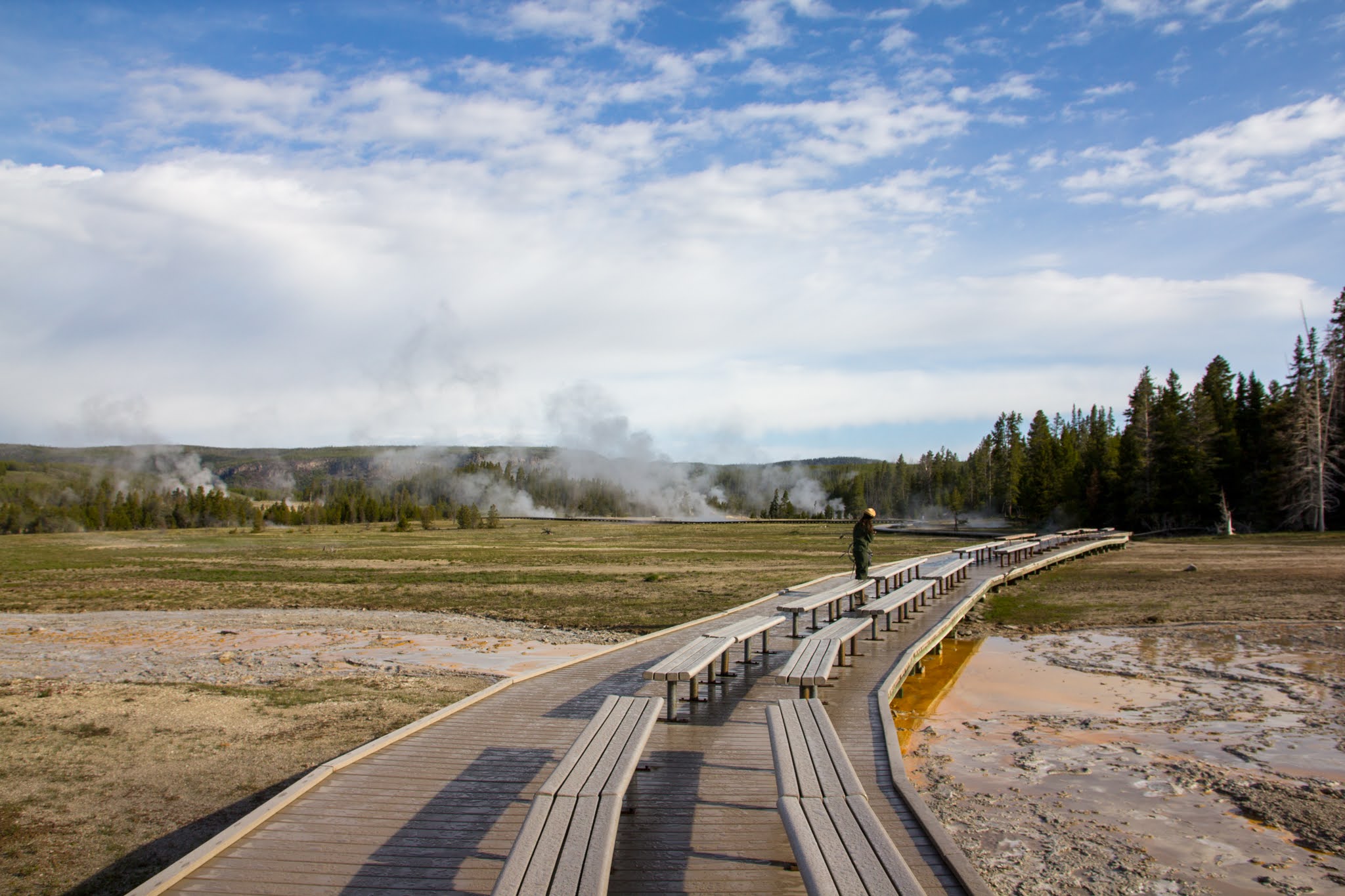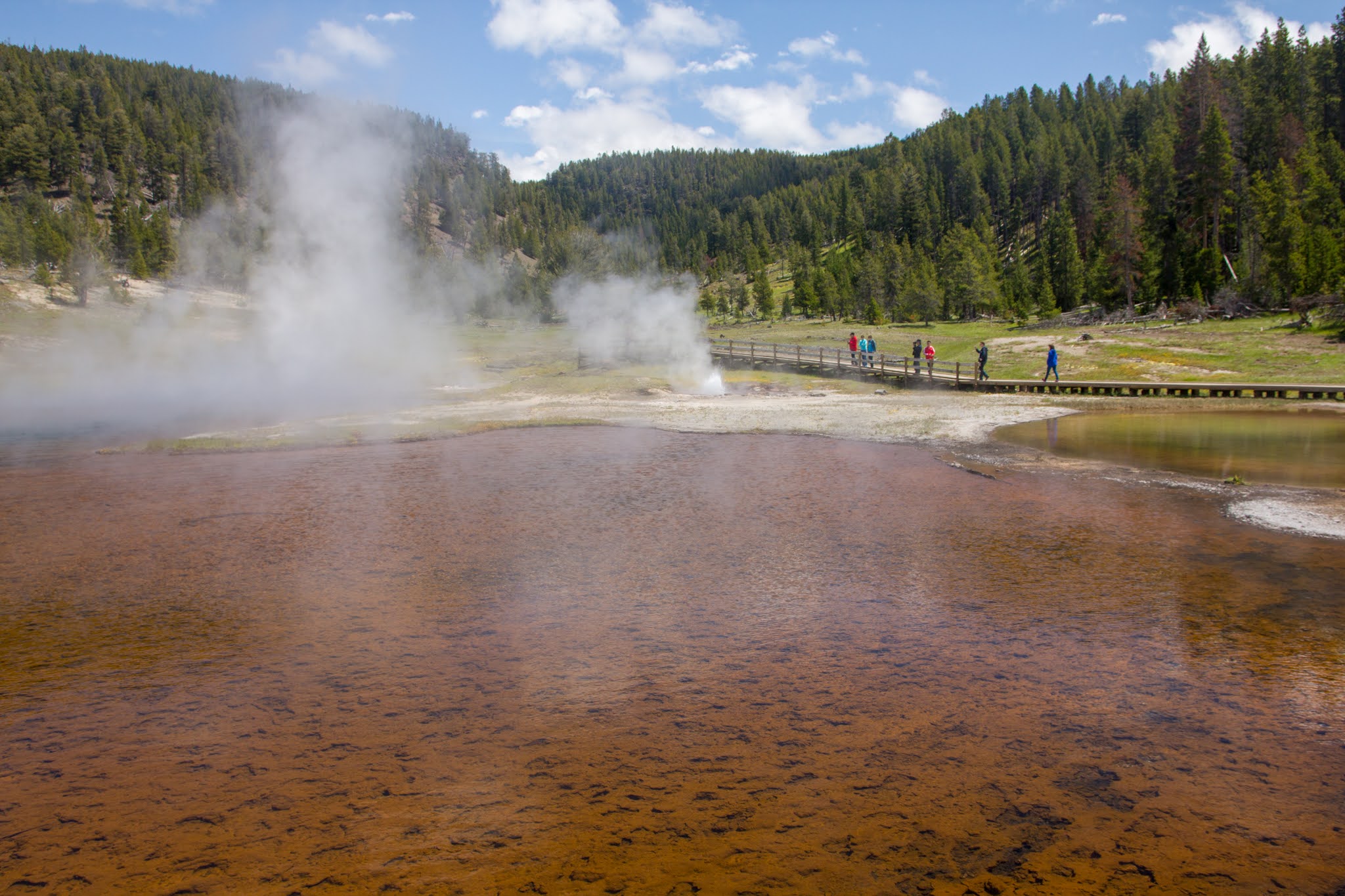ホテルからFirehole川を挟んだ対岸にある温泉エリアを歩いて回ります。
