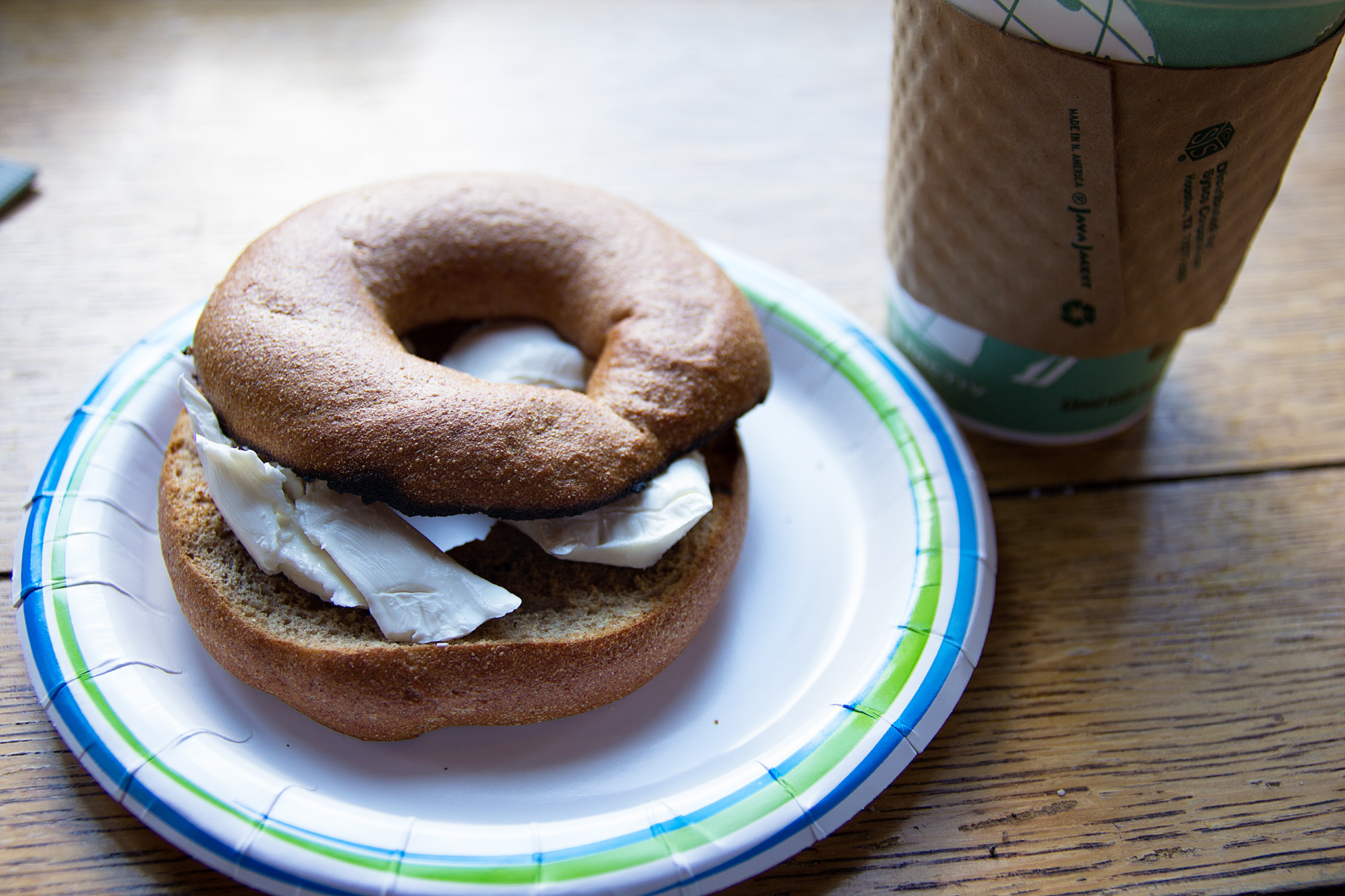 朝から営業している売店でベーグルとクリームチーズ、コーヒーを購入。