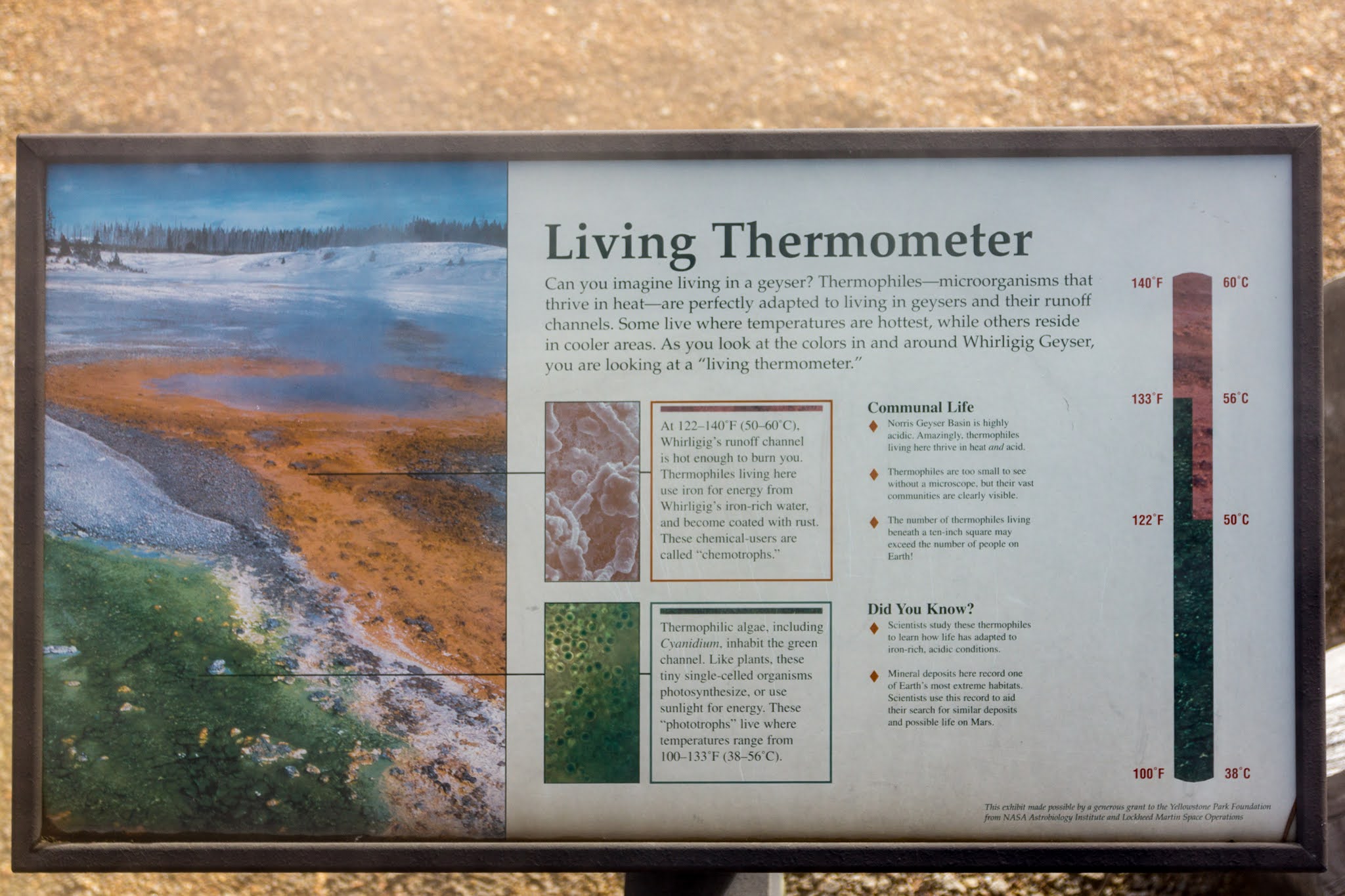 流れ出た水が徐々に冷やされるのでバクテリアの色が変わっていく。