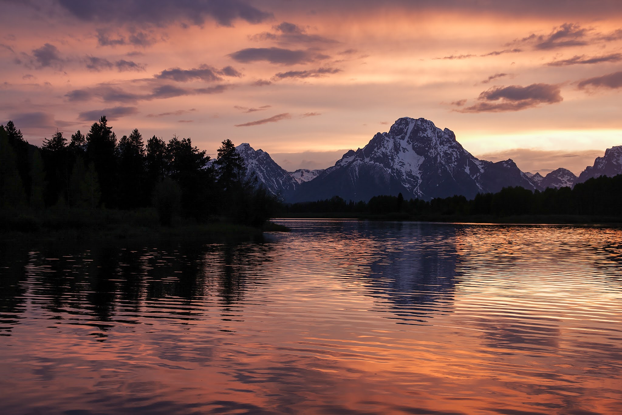 スネーク川越しにマウントモランを眺められるポイント。