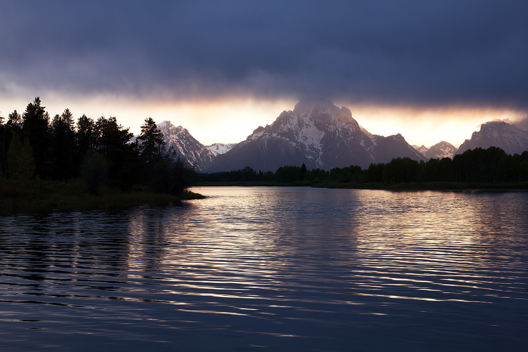 グランドティートンの山頂付近では雪が降っているようですね。