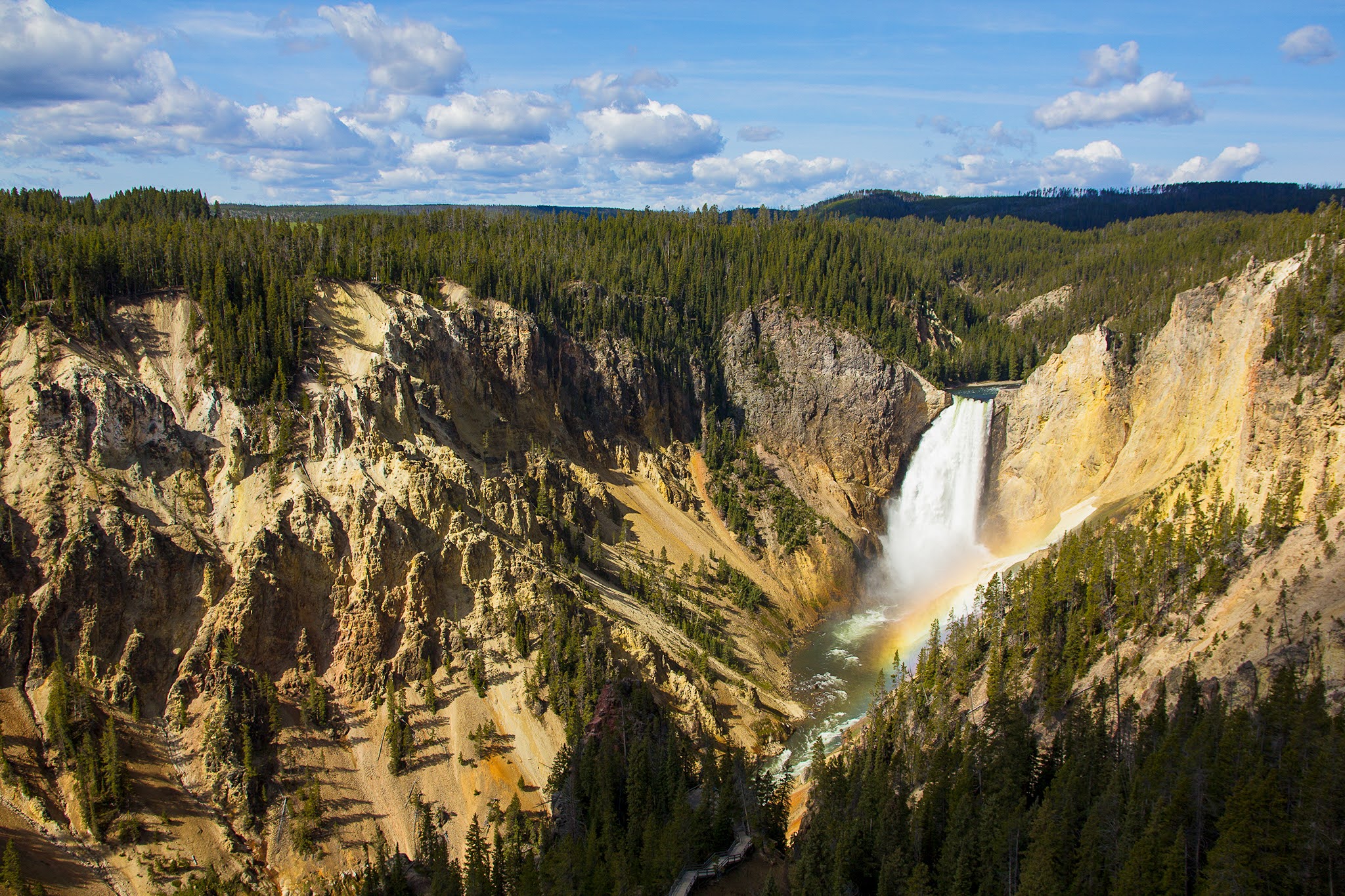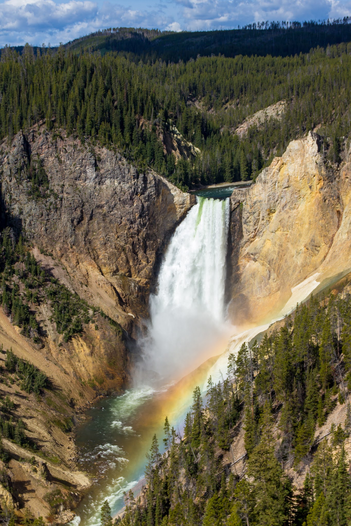 イエローストーン峡谷にある落差93mのロウワー滝。