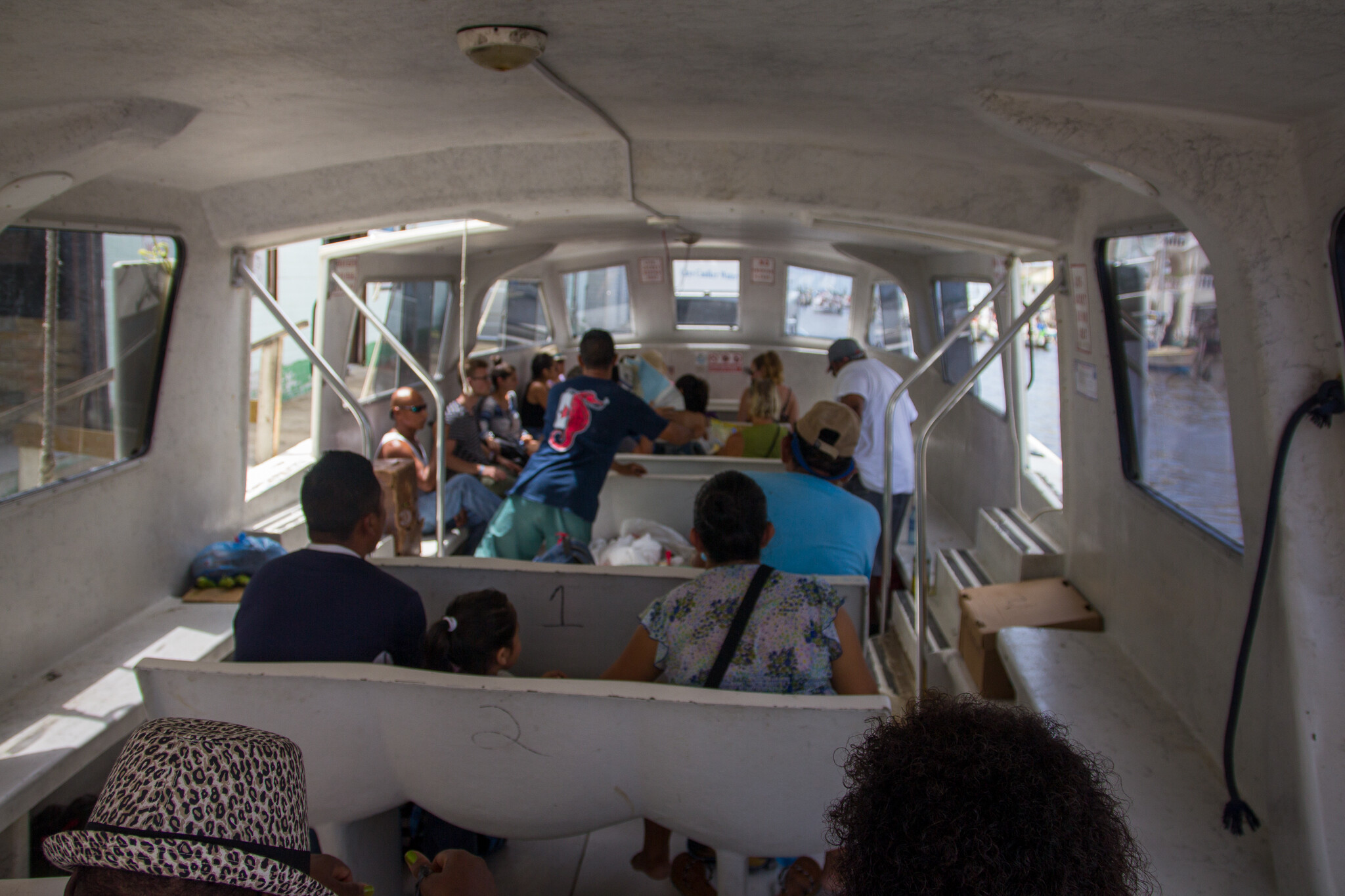 船乗り場は河口にあるので、川からの水で濁っていて汚い。
