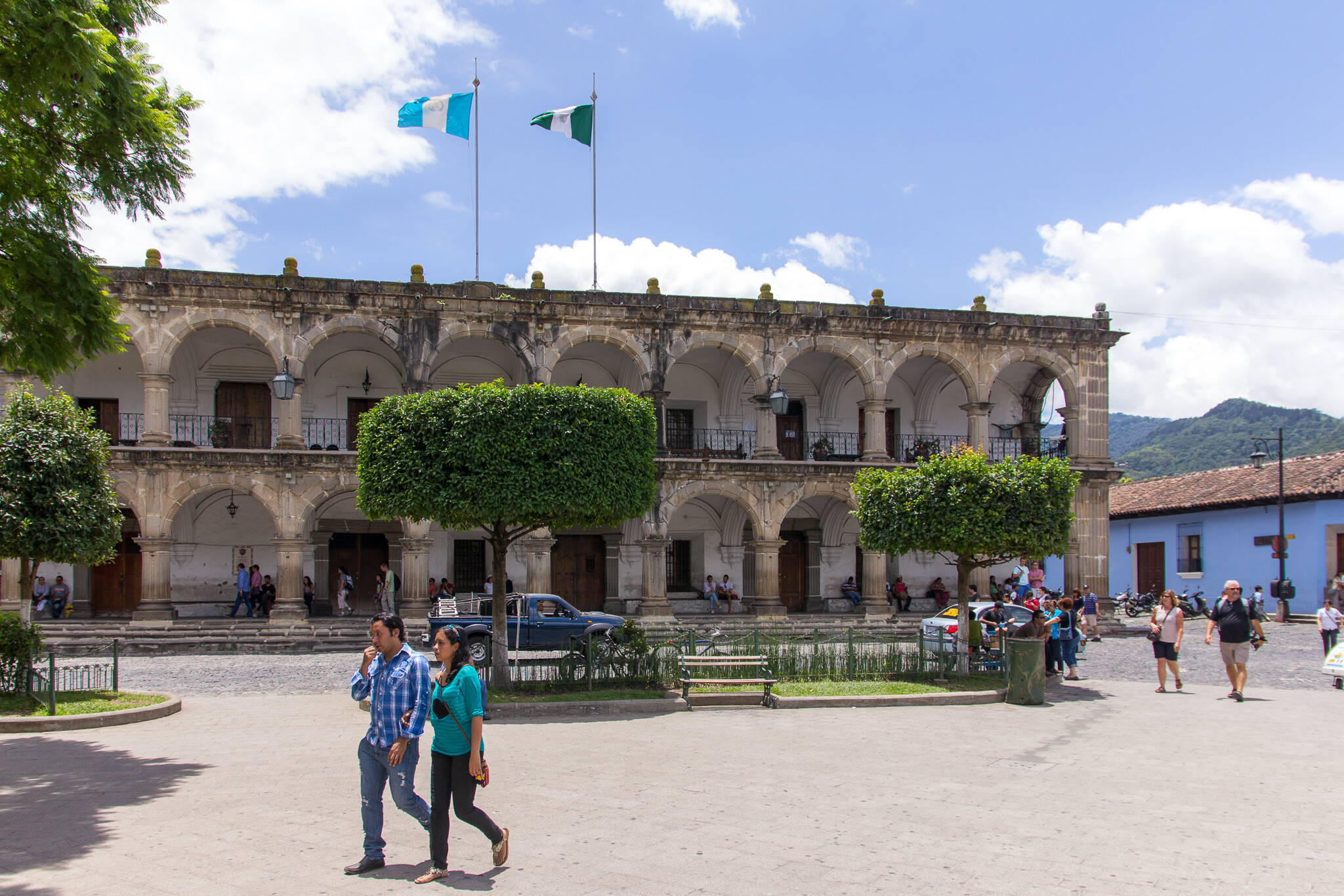 中央公園前にあるアンティグアの市庁舎。