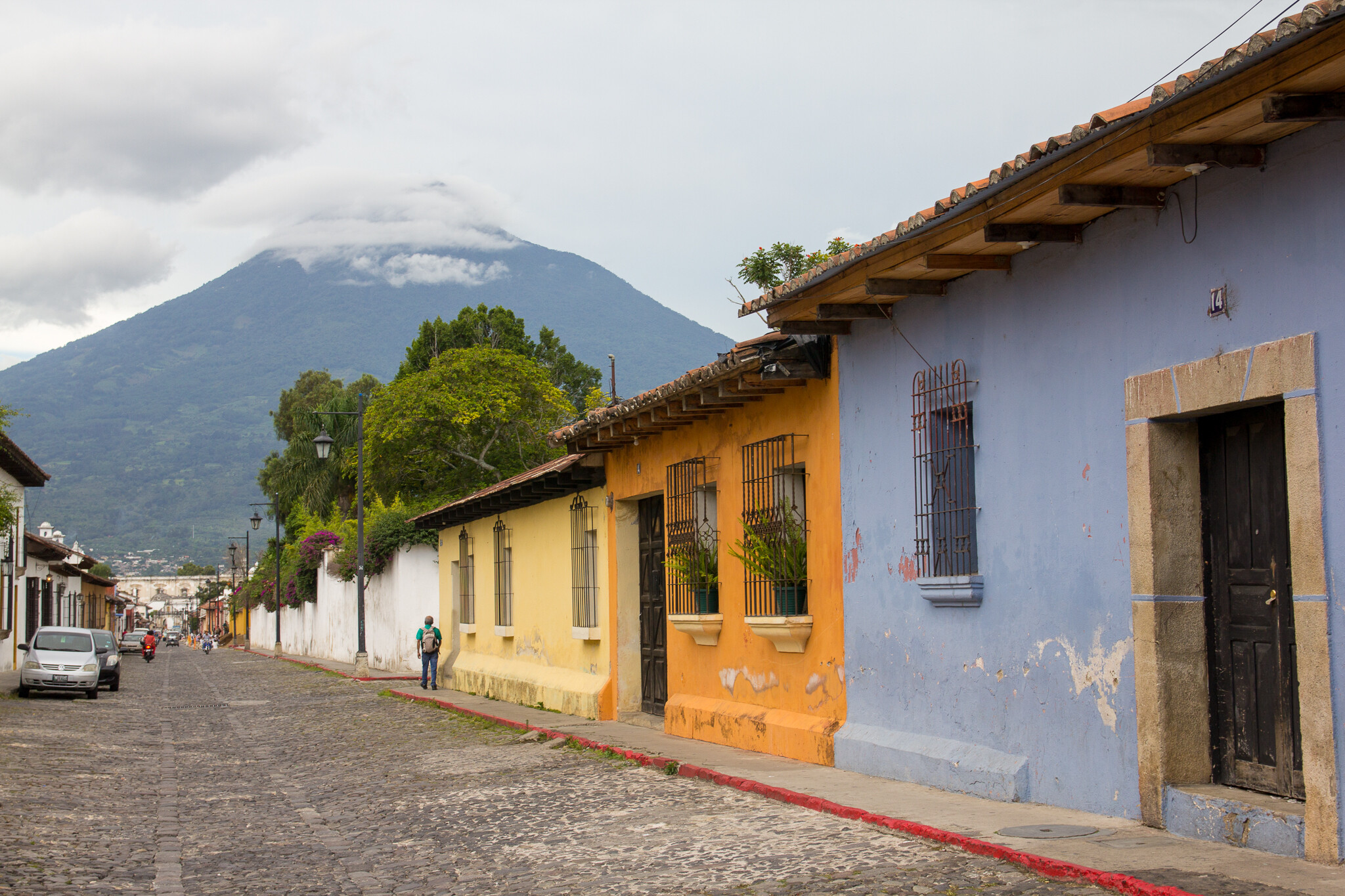アンティグアの旧市街地は、碁盤の目に道路がはりめぐらされ、