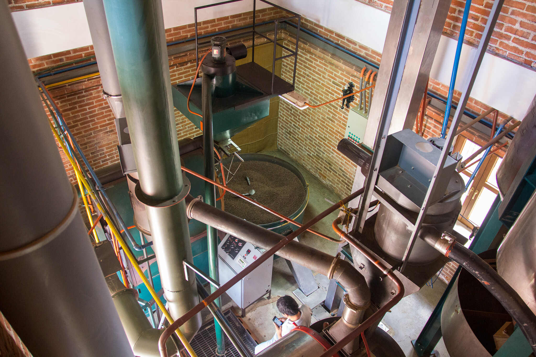 焙煎施設の煙突から出ているのがコーヒー豆を焙煎した時の煙。