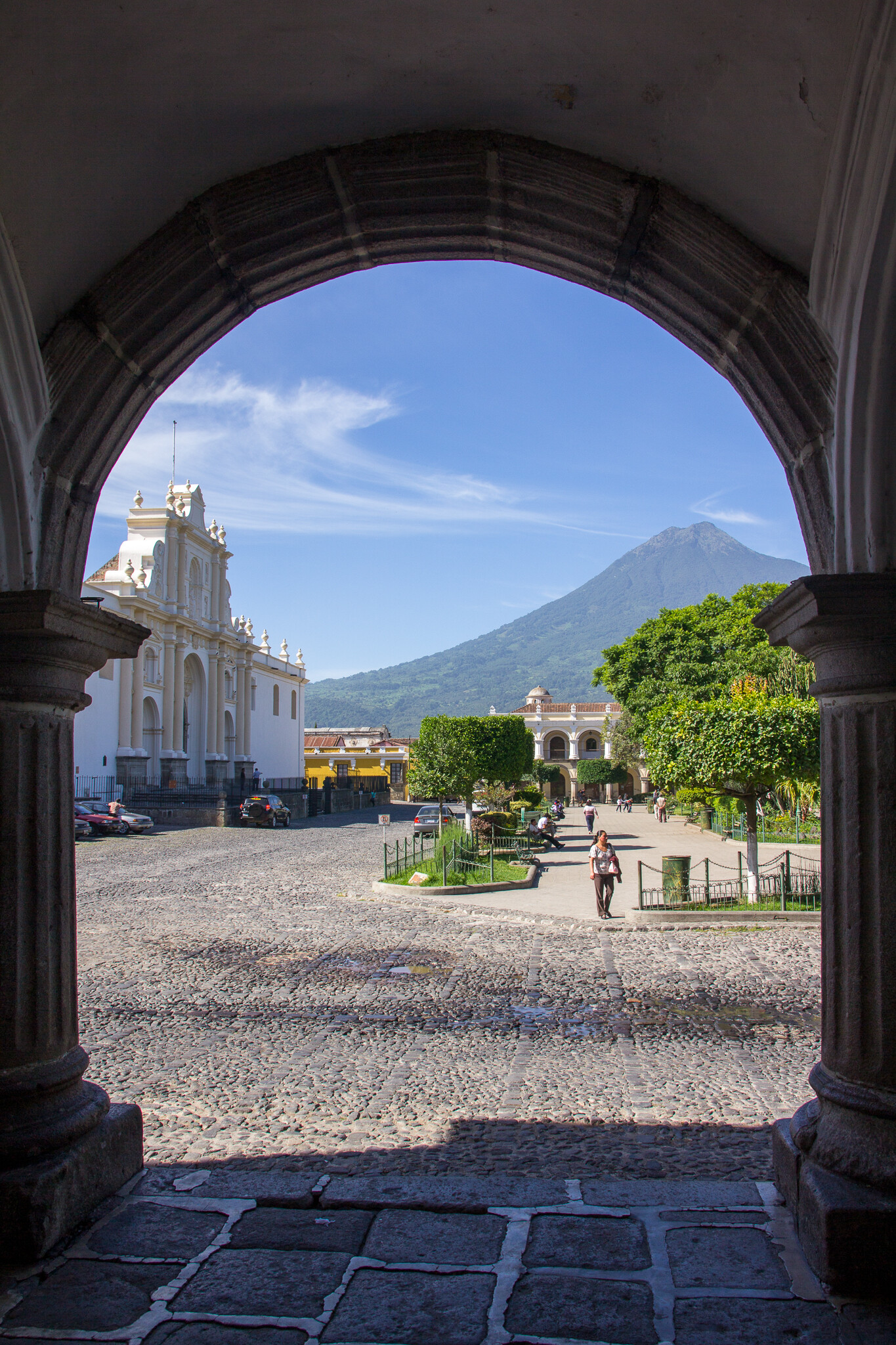 初日見えなかったアグア山がアーチ内におさめたくなる。