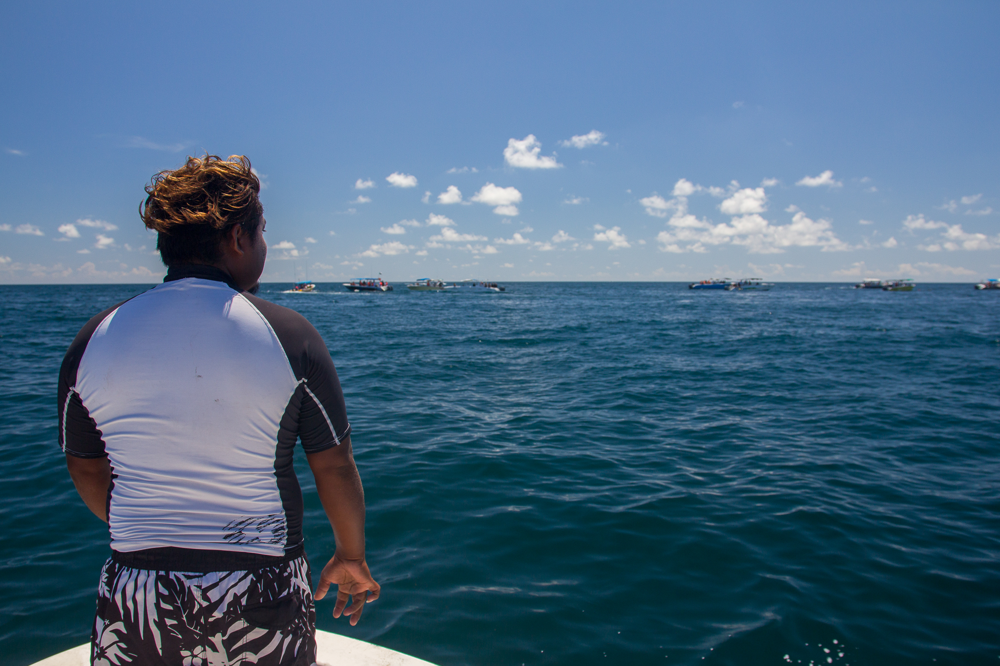他の船の人もエントリーして近づいてくるので、優雅に泳ぐというより、
