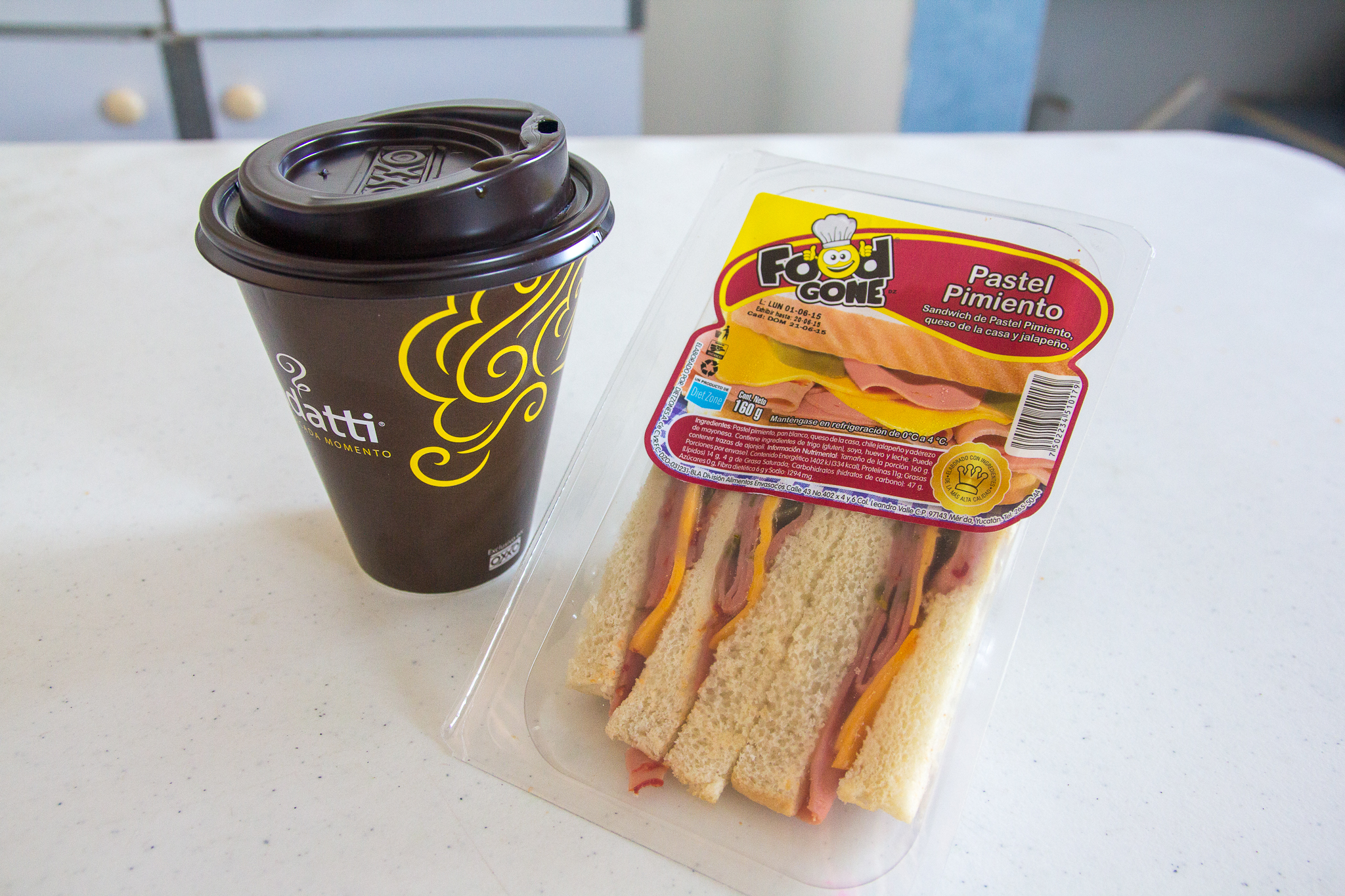 サンドイッチとコーヒーで34.5ペソ(約280円)。