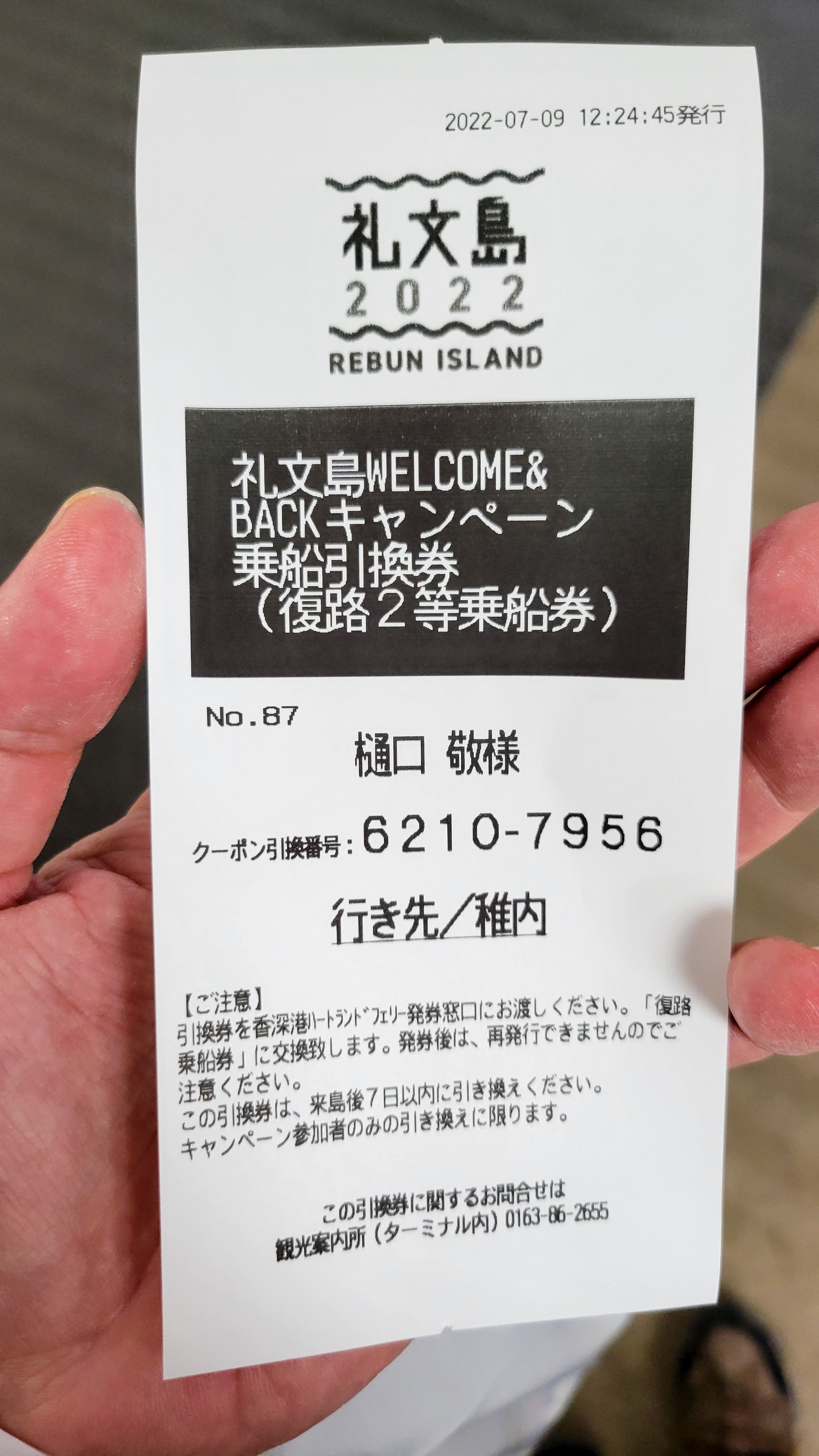 礼文島に宿泊して、指定した体験をすると、復路が無料になります。