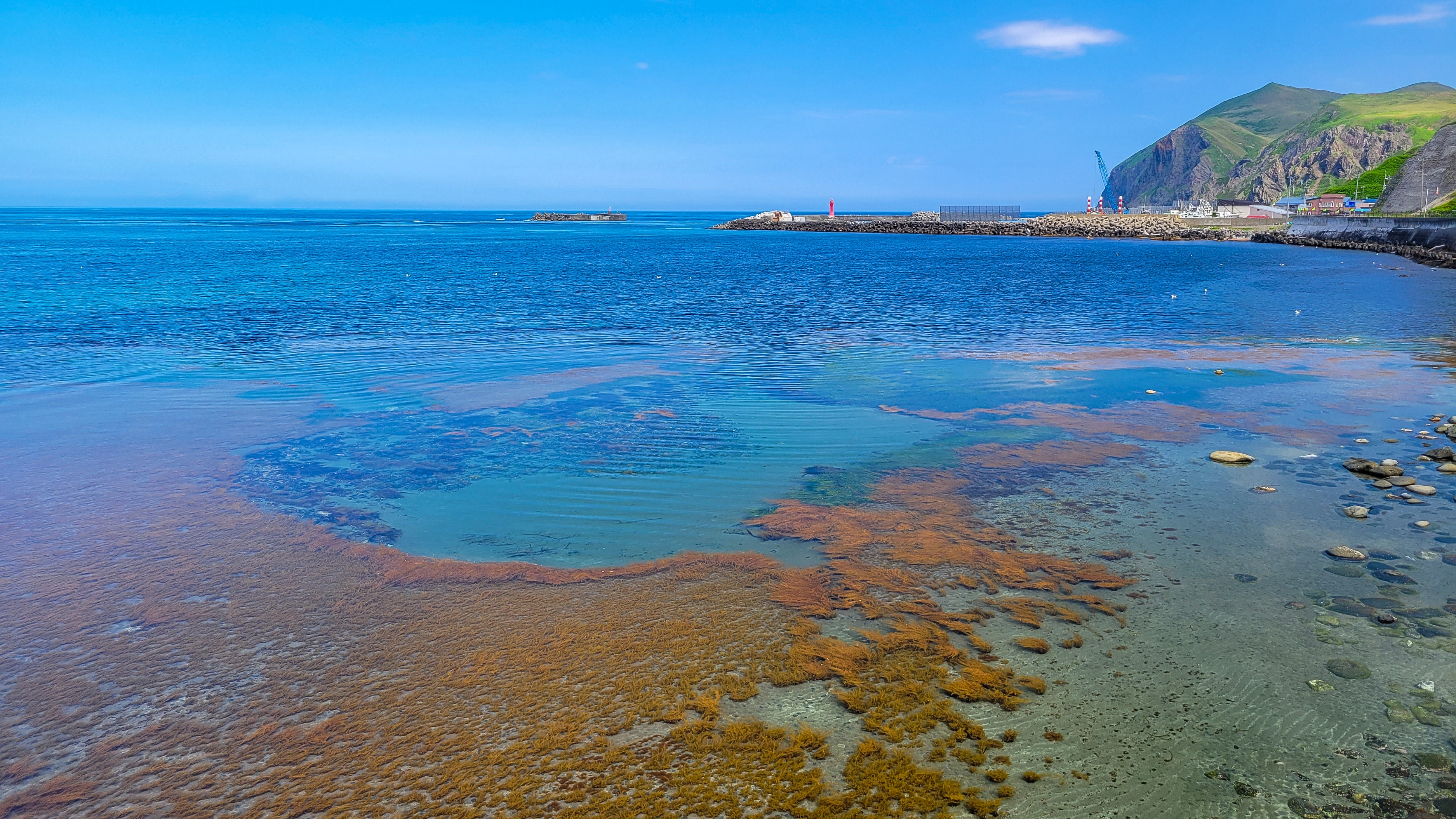海も透明度が高いはずなんですが、昆布が多くて黒っぽいです。