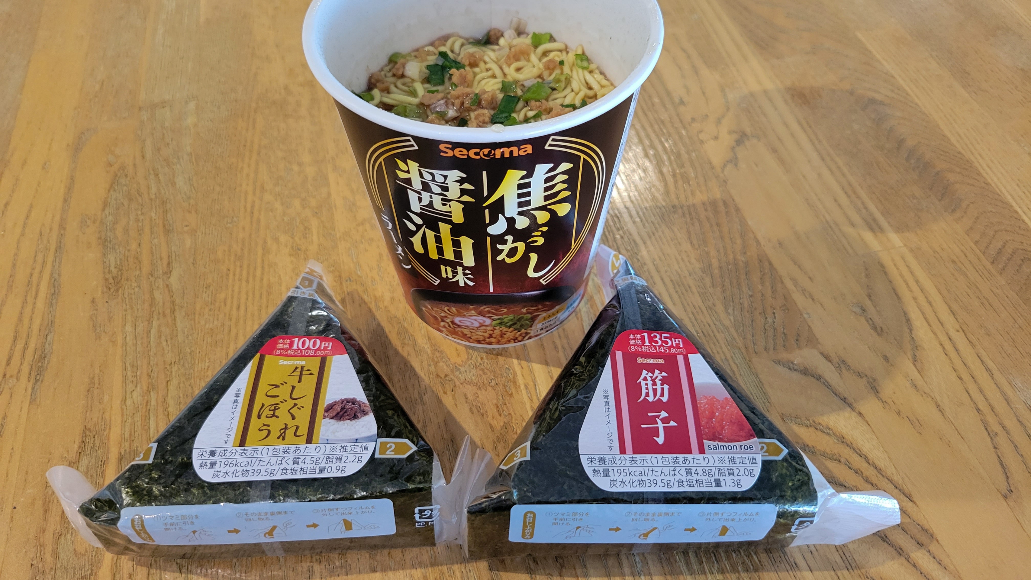 2階のフリースペースでセコマのコンビ二飯で、早めの夕食。