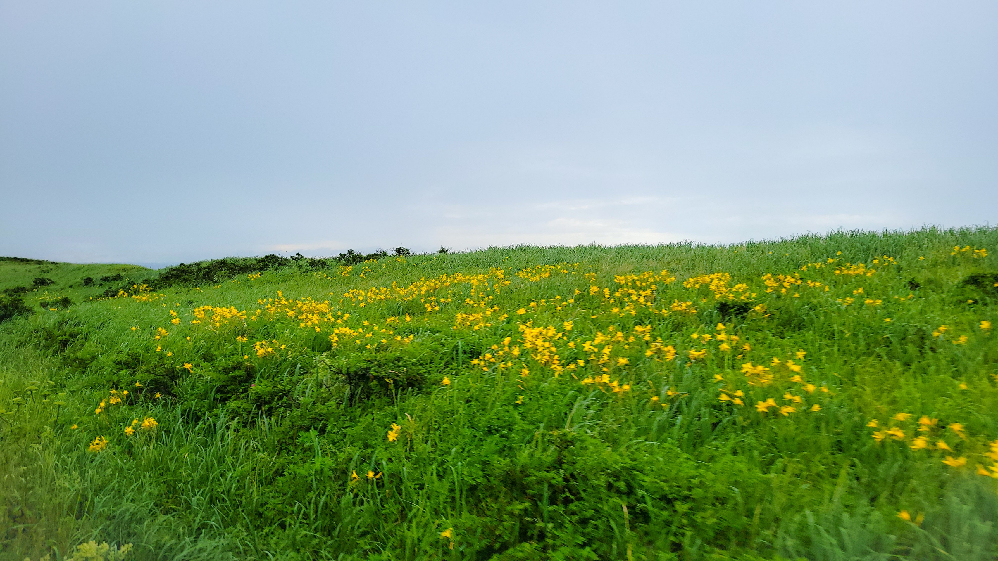 浜小清水と北浜駅間は、エゾキスゲの群落が見事。