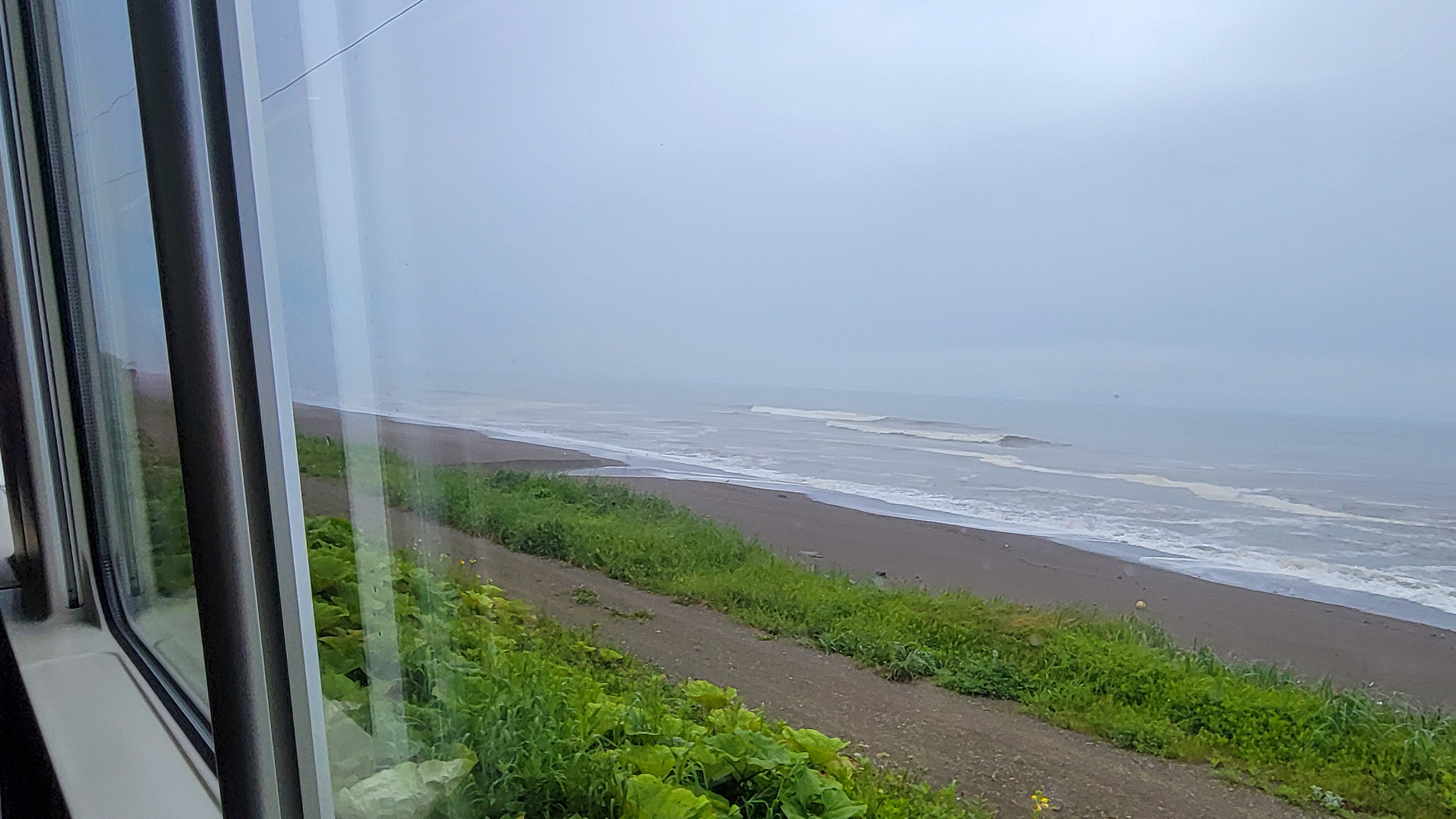 知床斜里駅を過ぎるとオホーツク海に出てきます。