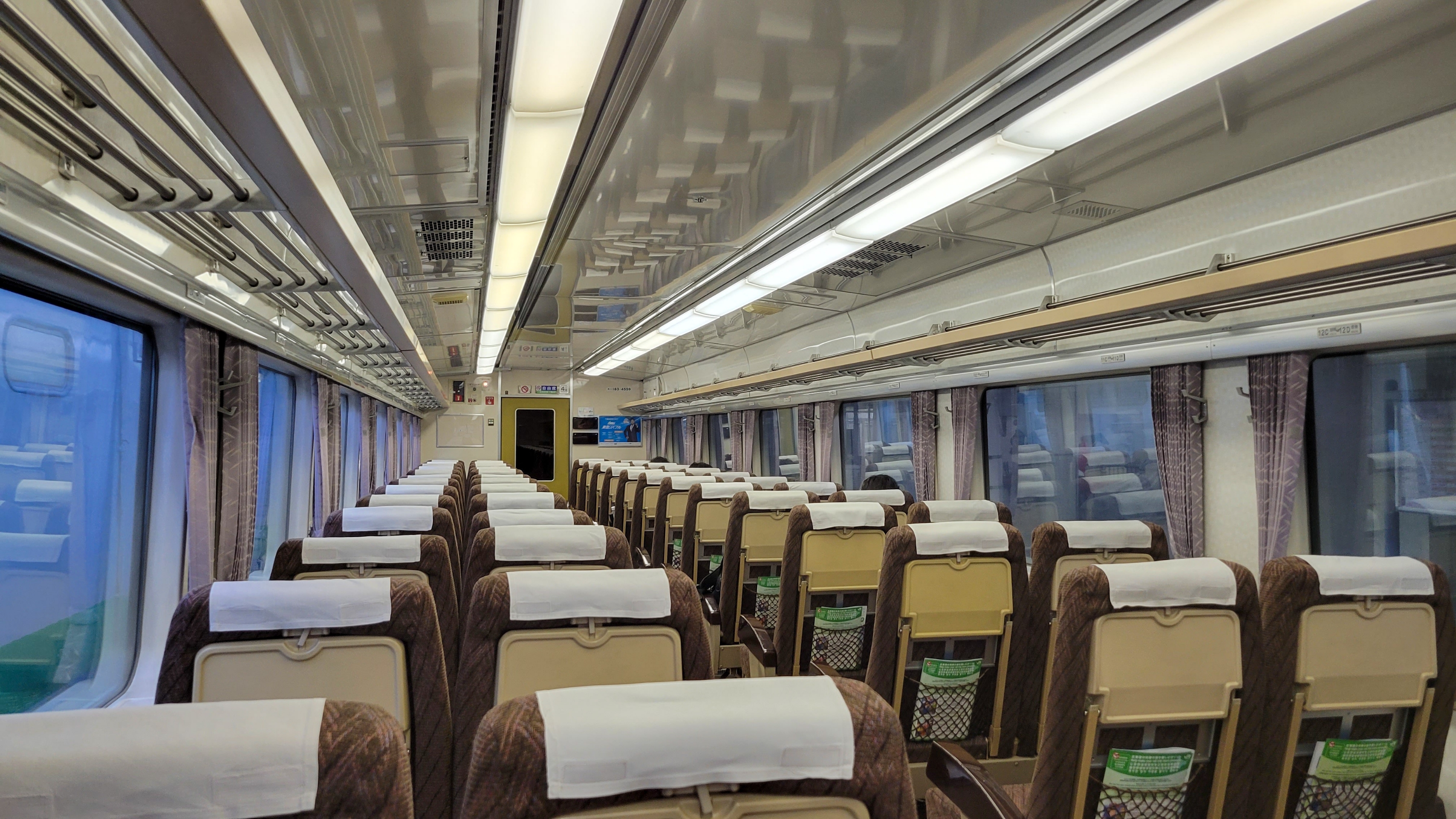自由席は普通の車両ですが、みんな窓全開。気持ちいいですね。