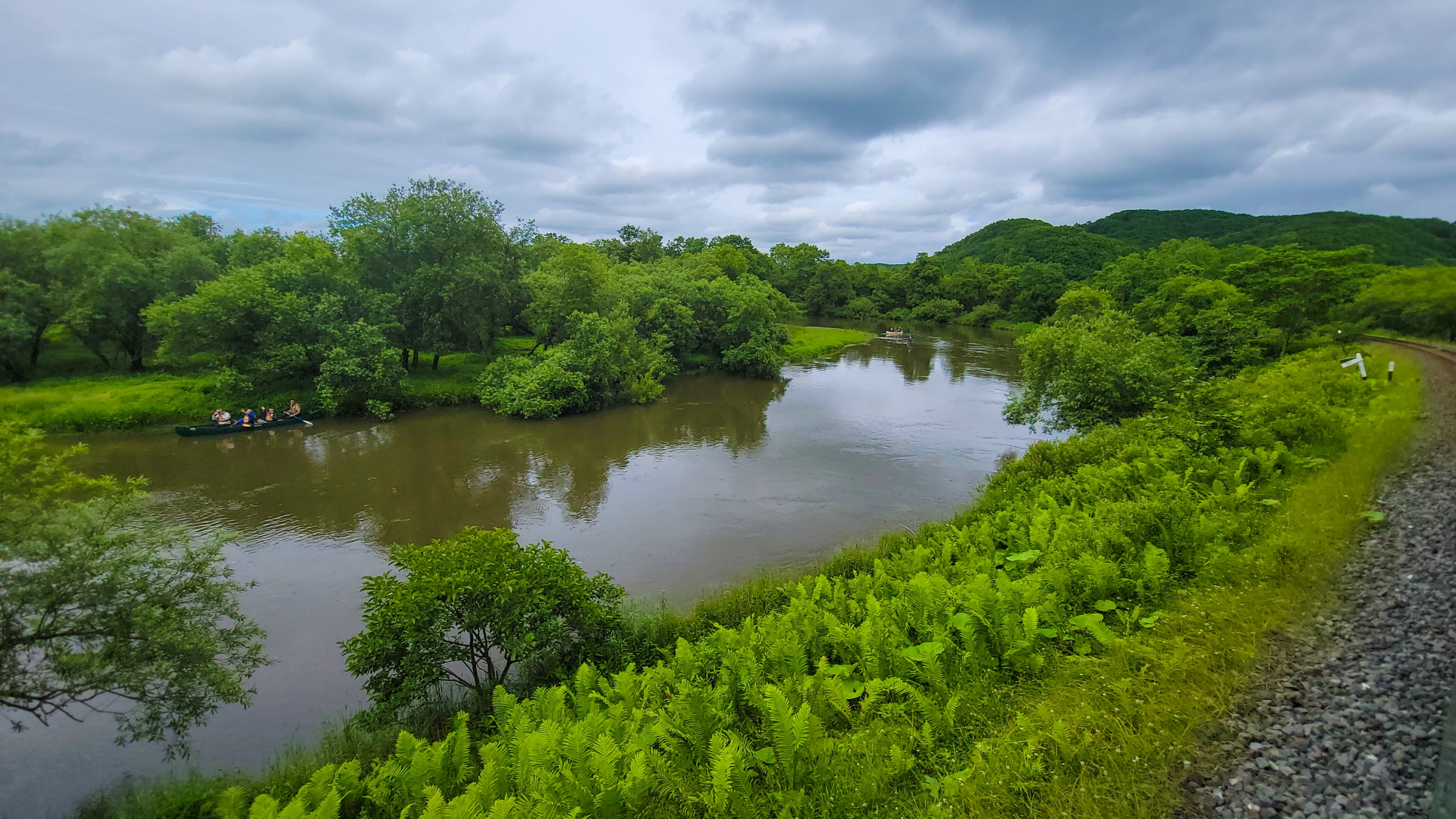 釧路湿原駅で大半の人が降りていったので、釧路川と並走する左側の座席をゲット。