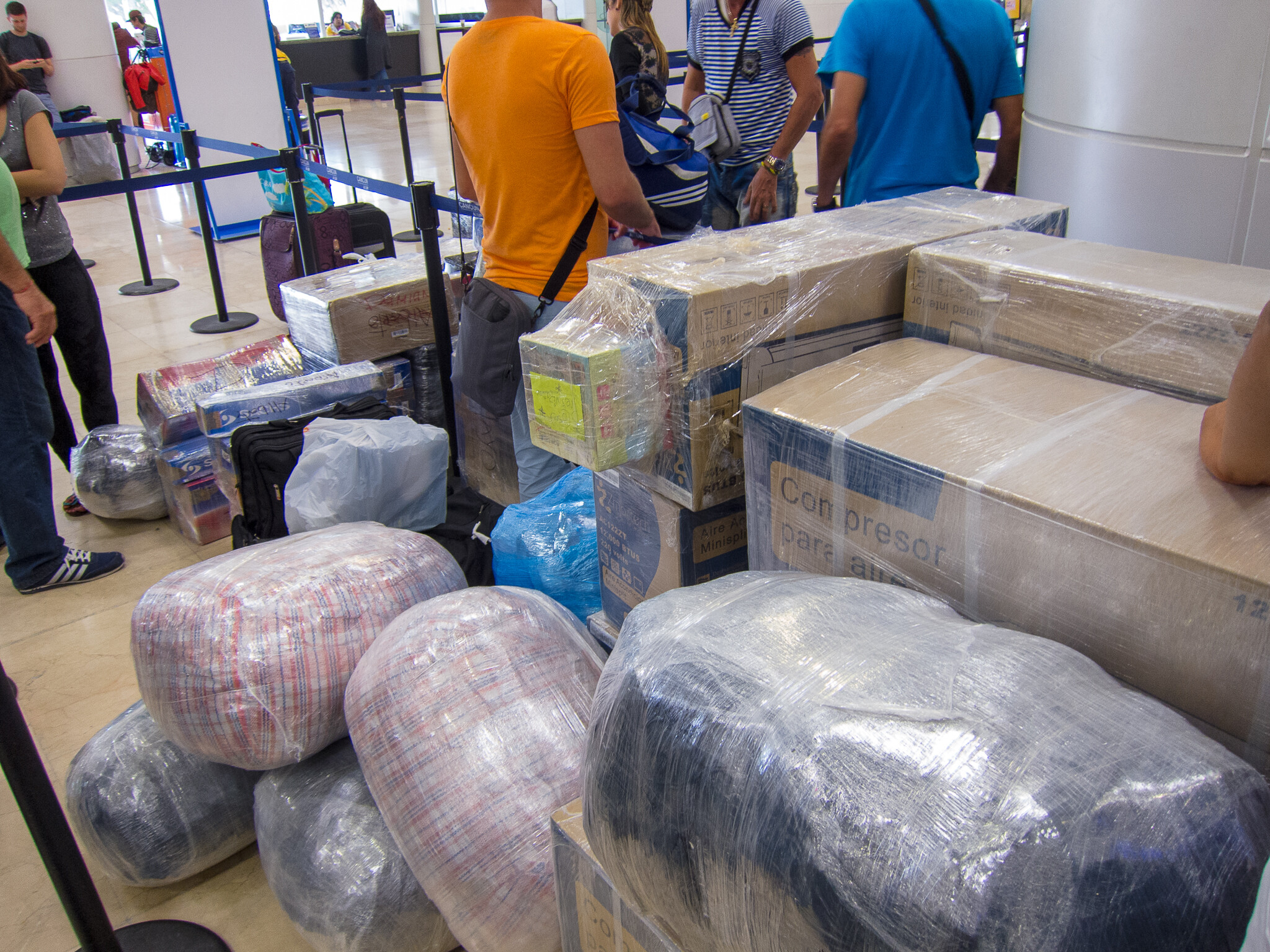 クバーナ航空のチェックインカウンターには、ものすごい荷物の量。