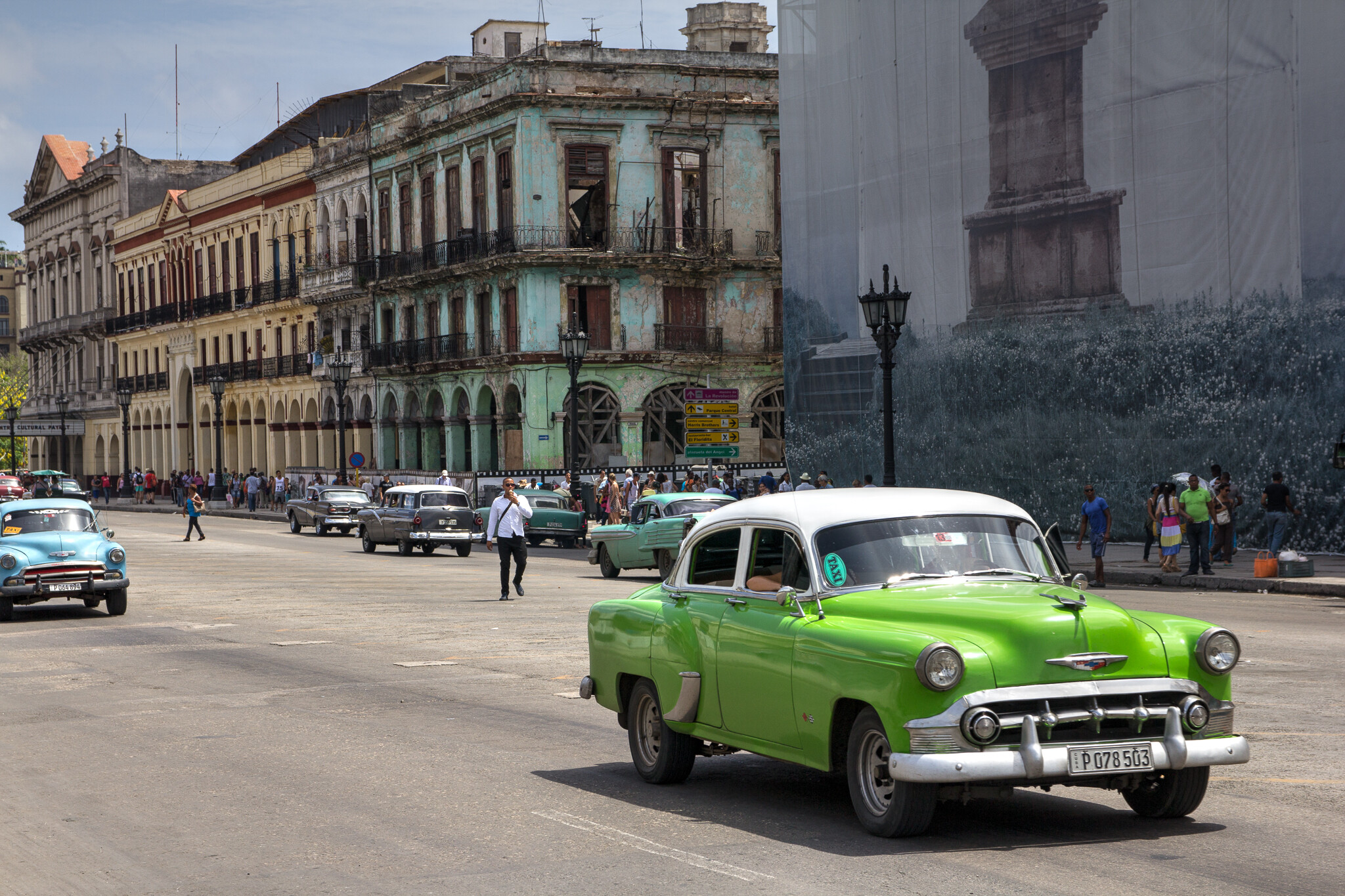 後ろに泊まっているのは観光客向けのアメ車タクシーです。