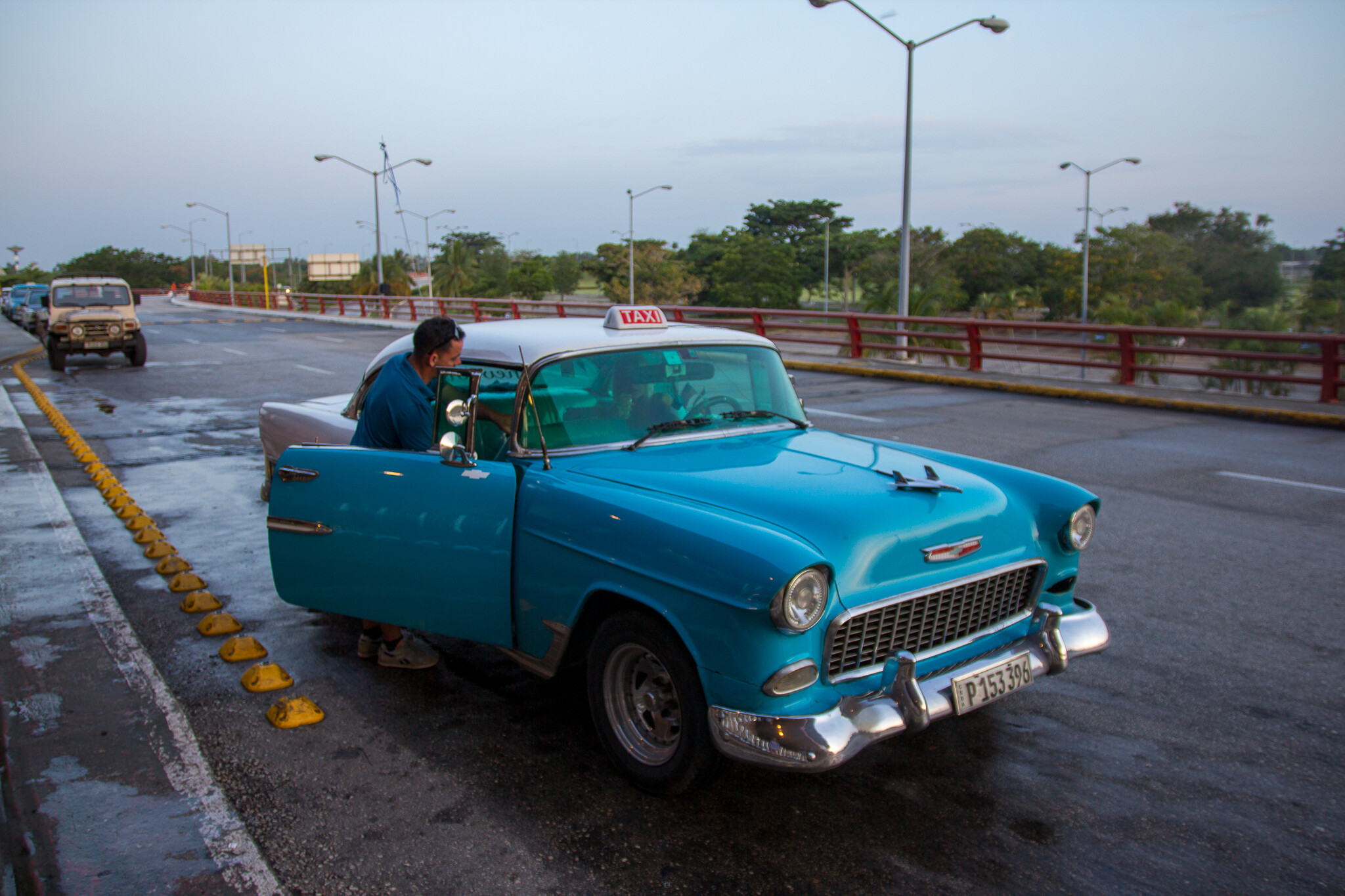 空港にお客さんを送ってきたアメ車のタクシーと交渉。
